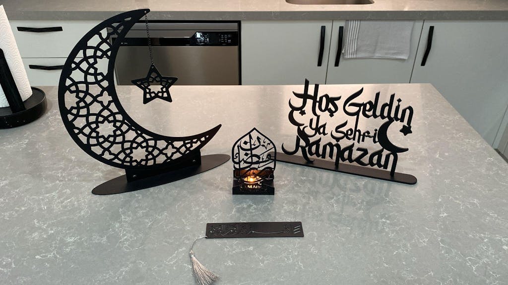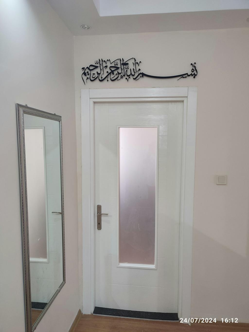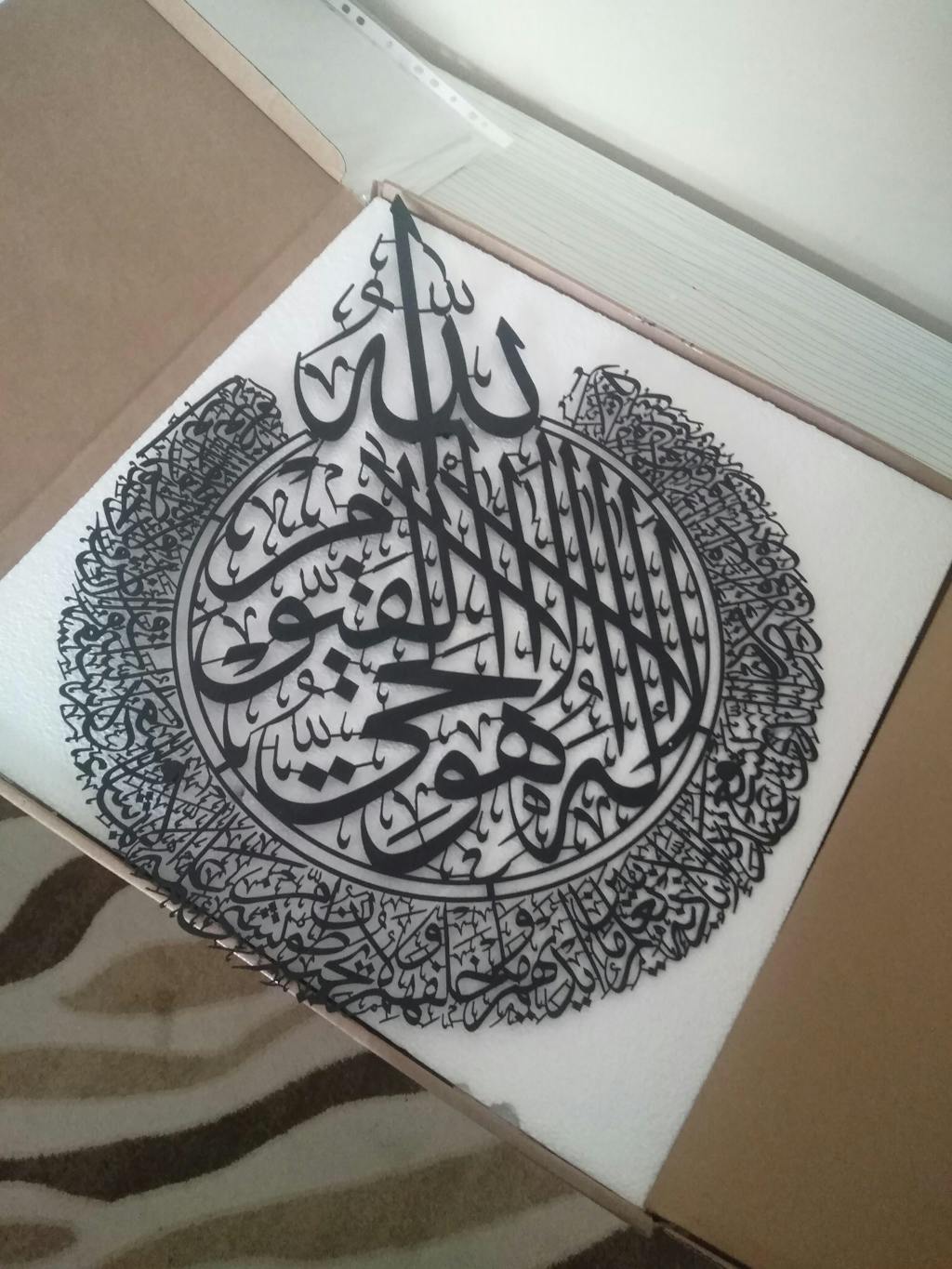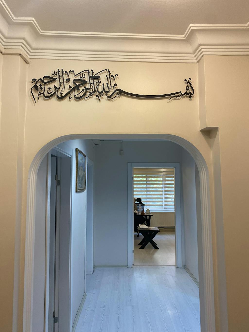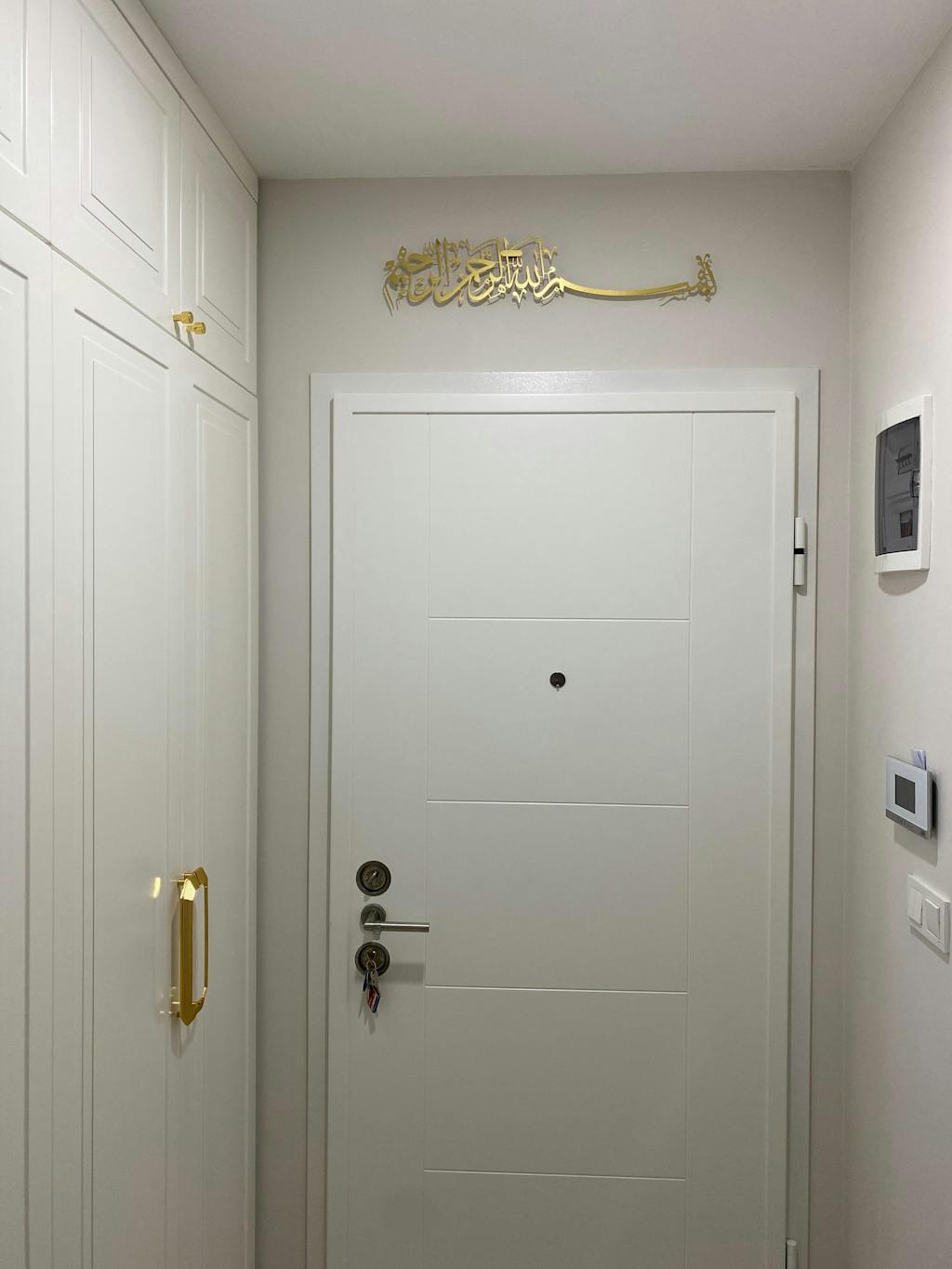 Besmele” hat yazısının zarif metal işçiliğiyle buluştuğu bu duvar tablosu, her işe Allah’ın adıyla başlama niyetini mekâna taşır; yaşam alanında huzur, bereket ve bilinçli bir başlangıç duygusu yaratır.