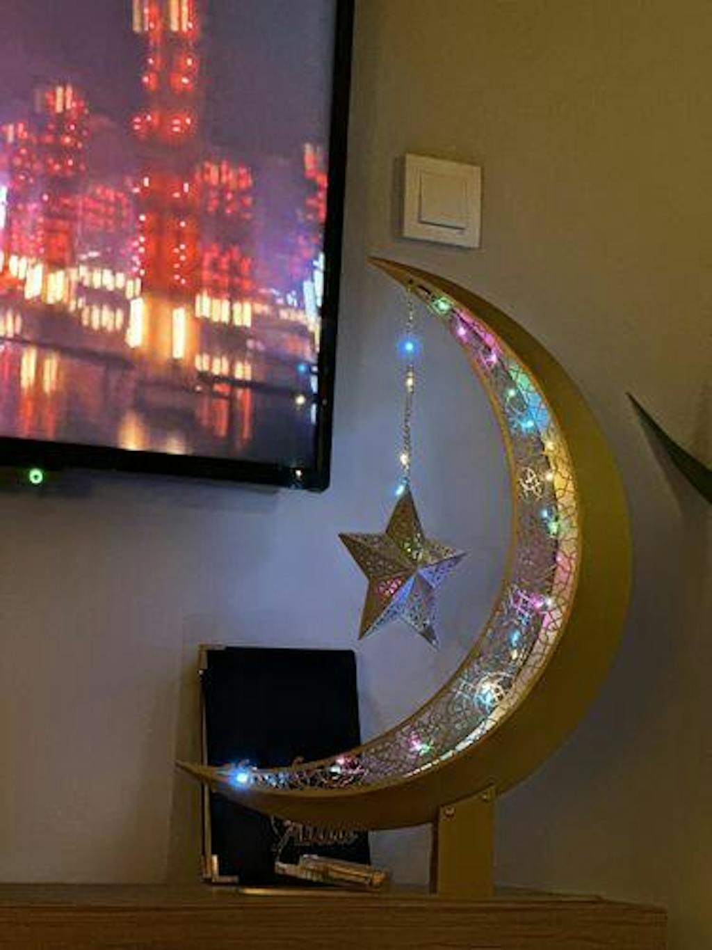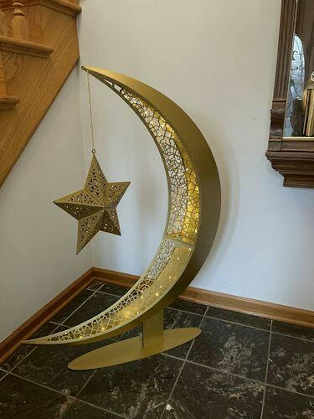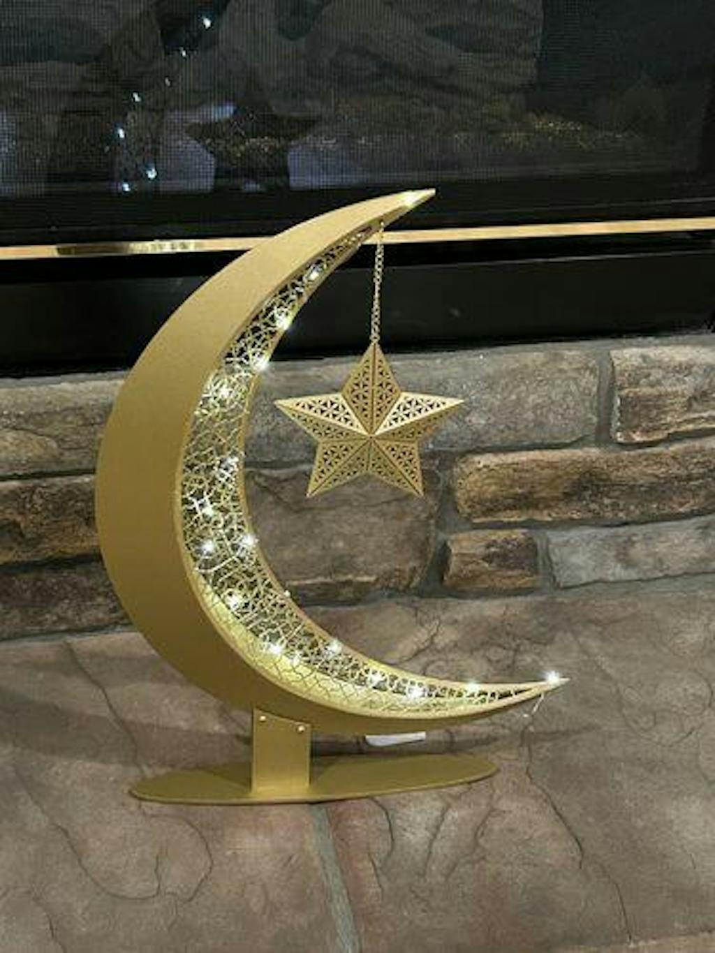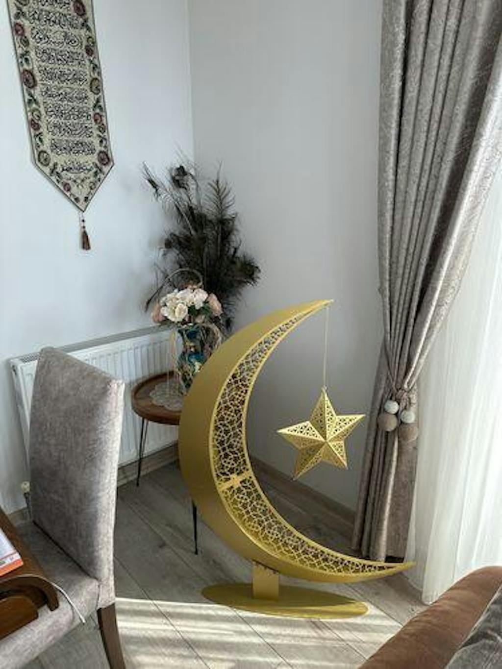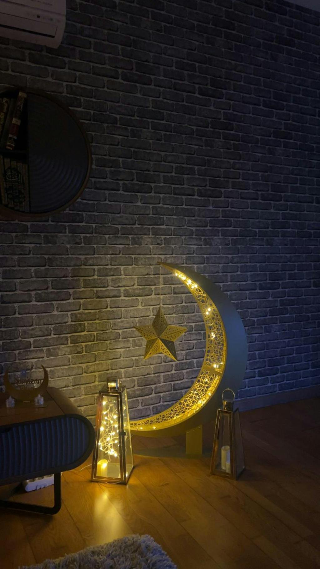 Bu 3 boyutlu metal Ramazan hilali, Ramazan’ı gökyüzünün sessiz ihtişamıyla evinize taşır — huzur, sabır ve bereketin hilalin ışığında yeniden can bulduğu bir selam.