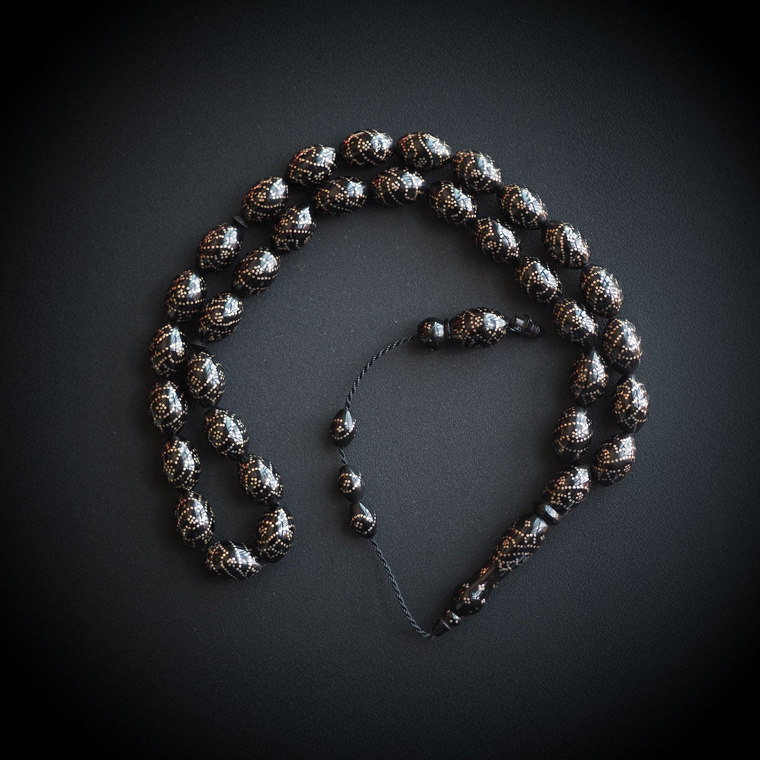 Gümüş Çakımlı İnce İşçilikli Kuka Tesbih (Siyah Ton) - WATD079