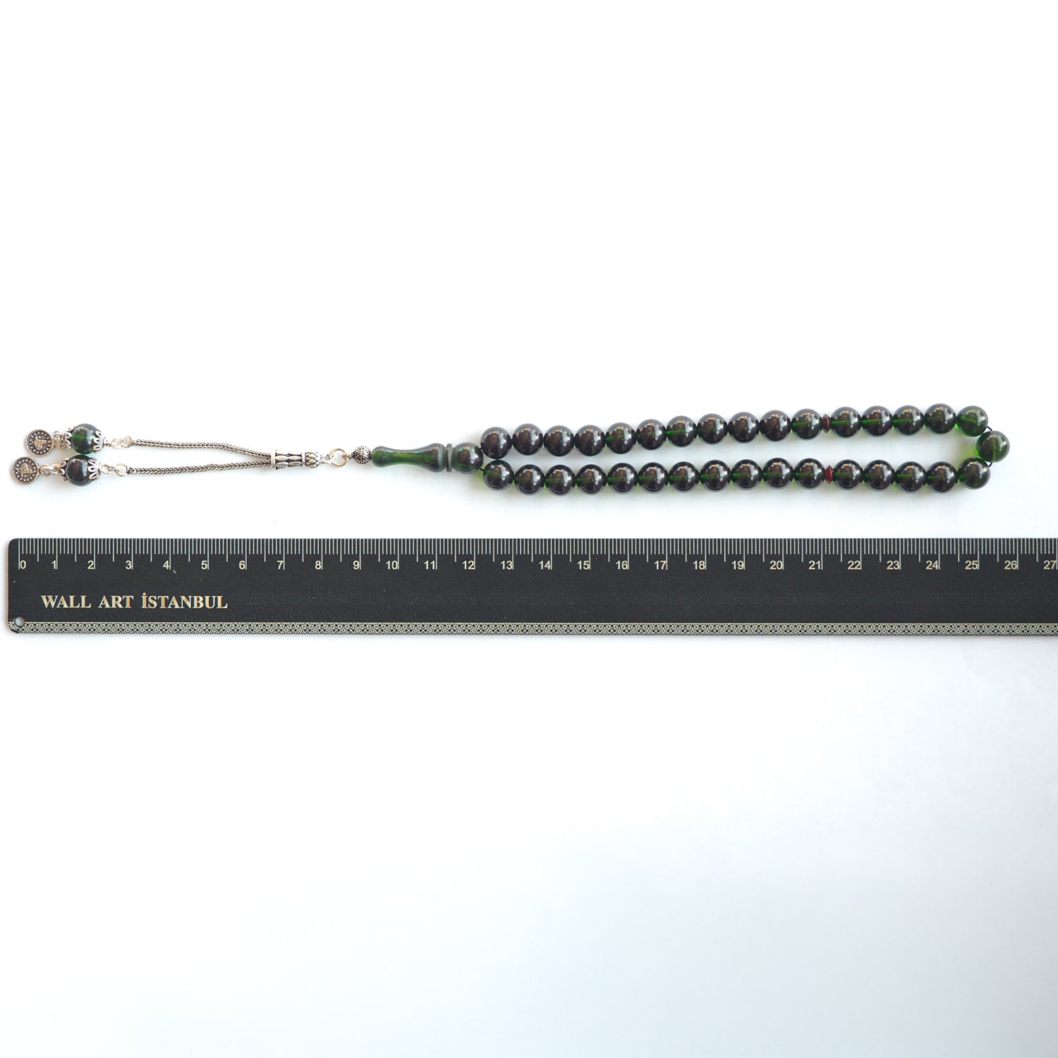 Gümüş Püsküllü Ateş Sıkma Kehribar Tesbih - WATD238