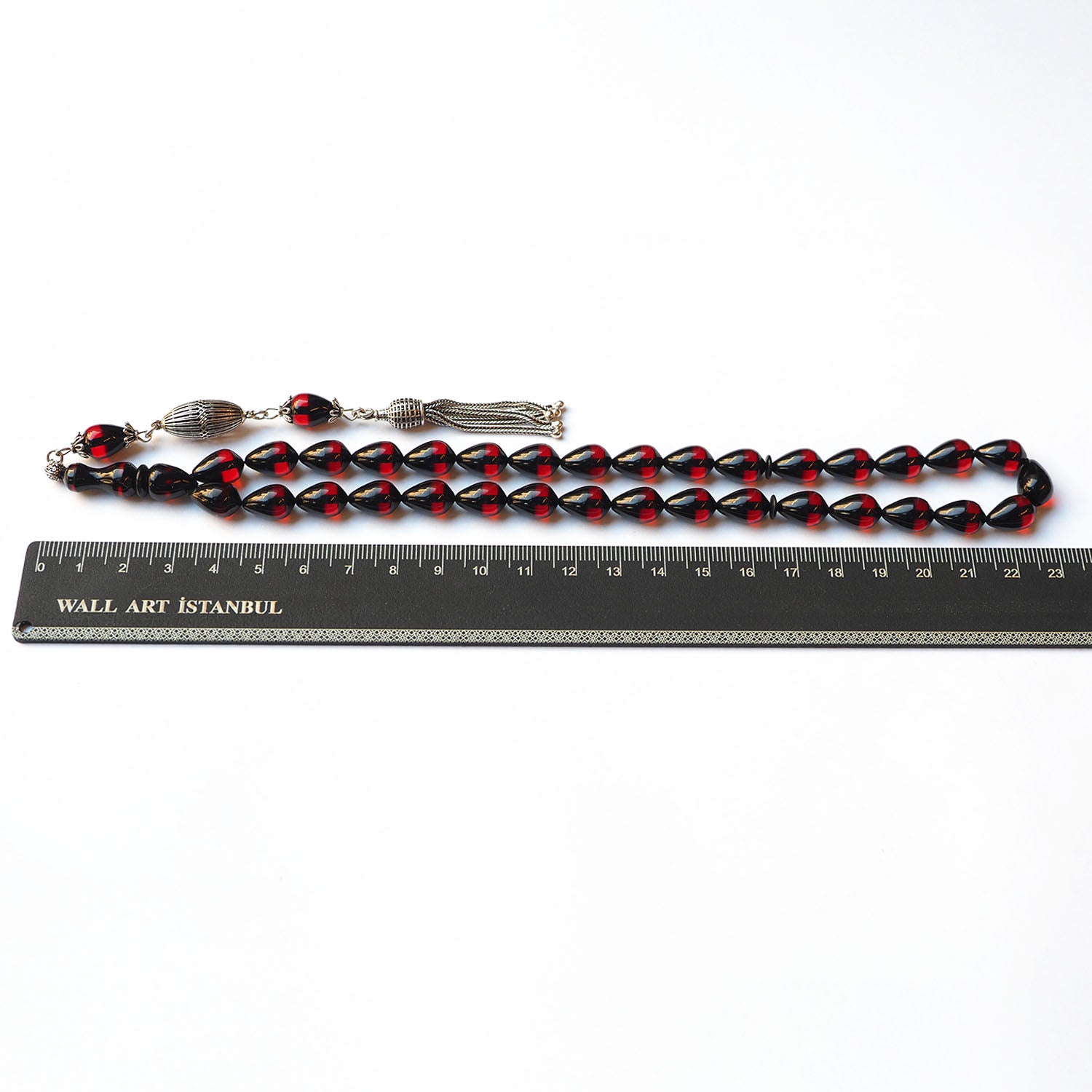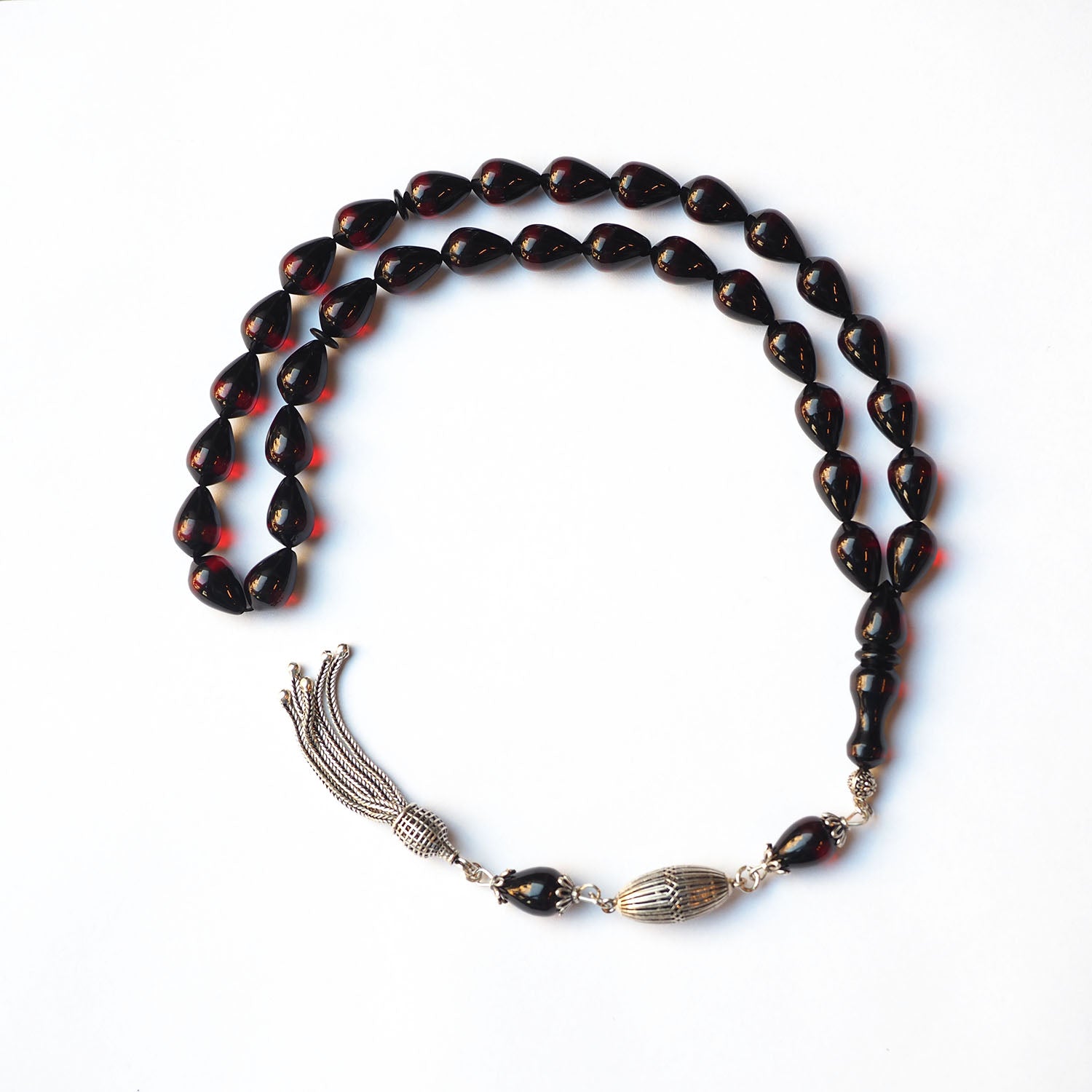 Gümüş Püsküllü Sürmeli Ateş Sıkma Kehribar Tesbih - WATD168