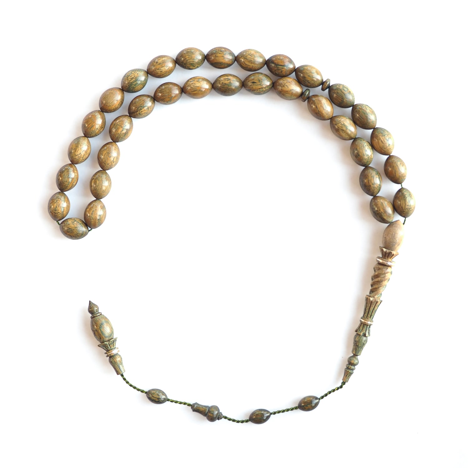 Yeşil Pelesenk Ağacı İmame ve Hitame Oyma Gümüş Sargı İşçilikli El Cilalı Tesbih - WATD231